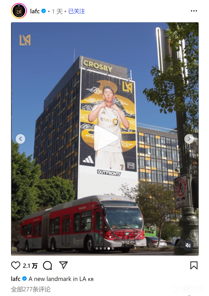 图3是否在向足球圈知名平台的开屏画面致意?洛杉矶FC在社交媒体上发布了一张图片,并配文“洛杉矶的新地标KR”。